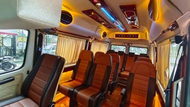 Luxury Tempo Traveller – Premium interiors for weddings, VIP tours, and high-end travel.